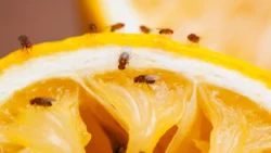 Known for buzzing around kitchens and trash bins, house flies are not only annoying but can also spread bacteria when they land on food and surfaces. - Fruit Flies